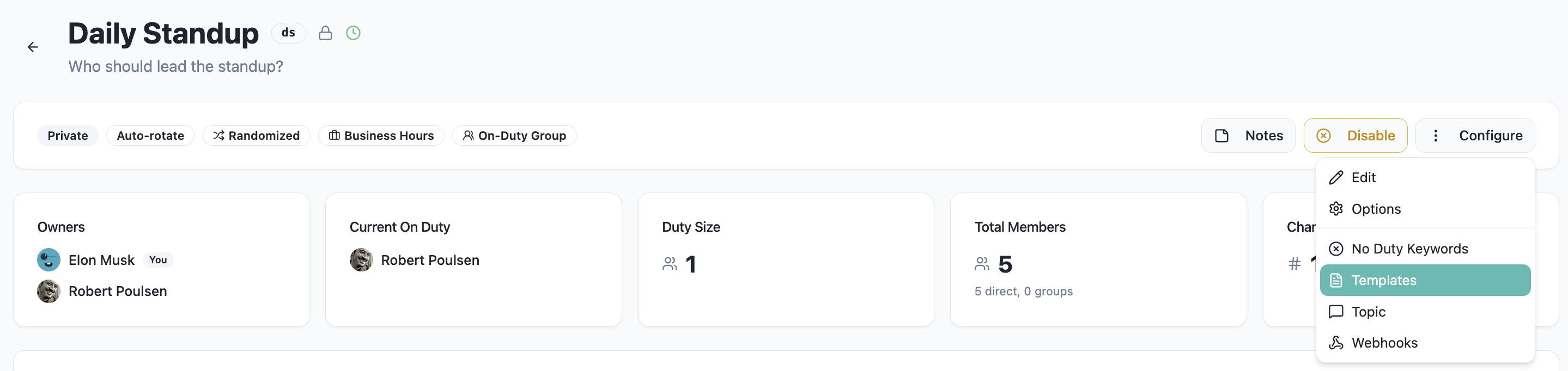 To reach that section, use the Options button in the rotation details page and choose Templates.